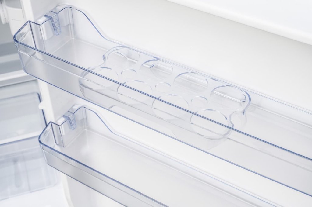 Objem chladící části je 95 l, mrazící pak 14 l. Vnitřní prostor je rozčleněn prostřednictvím výškově nastavitelné poličky z tvrzeného skla a průhledným šuplíkem pro praktické skladování ovoce a zeleniny. Nechybí ani tři přihrádky ve dveřích.
