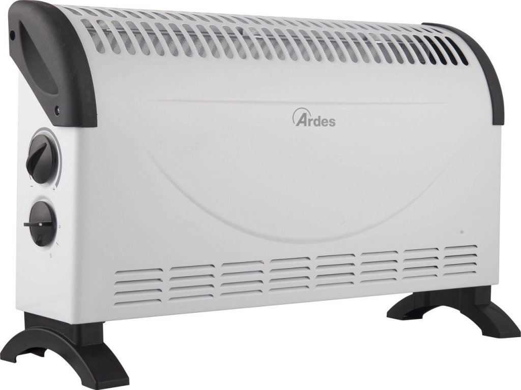 Teplovzdušný konvektor, volně stojící, nastavení výkonu na 750 a 1 500 W, termostat, ochrana před přehřátím, vypnutí před převrhnutím, příkon 1 500 W.