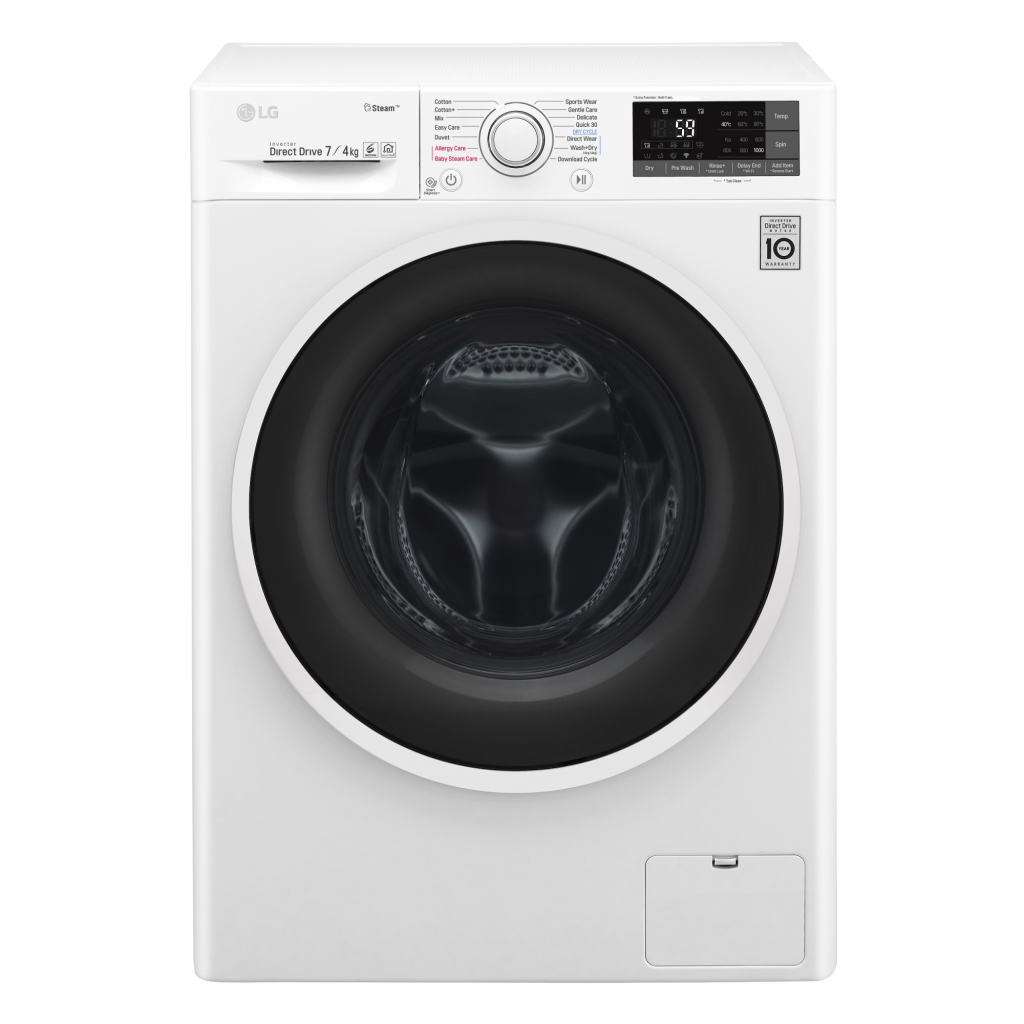 Předem plněná pračka kombinovaná se sušičkou LG F70J7HG0W s hloubkou jen 45 cm. Pračka vypere 7 kg prádla a usuší 4 kg a umožňuje využít parního praní pro odstranění nežádoucích alergenů z prádla.