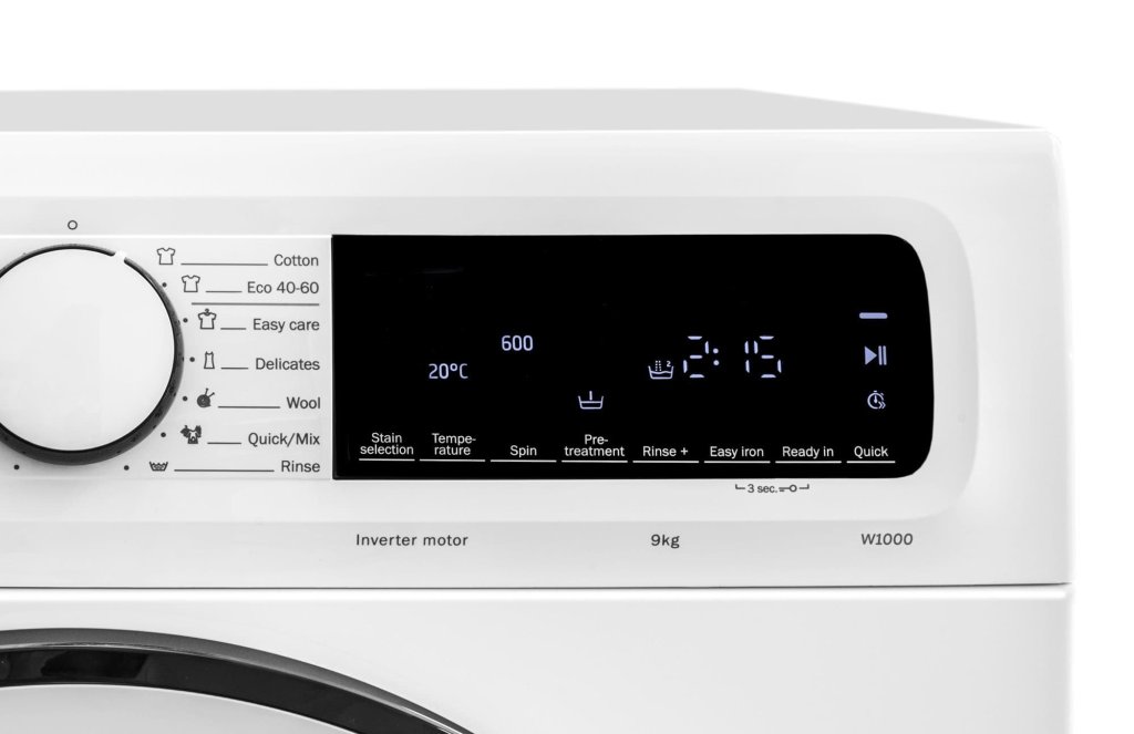 Předem plněná pračka, Maximální náplň: 9 kg, Spotřeba vody: 48 l/cyklus, Spotřeba el. energie: 46 kWh/100 cyklů, Třída energetické účinnosti: A, Hlučnost při odstřeďování: 70 dB (A) re 1 pW, Maximální otáčky při odstředění: 1400/min, BLDC invertor motor, 14 pracích programů, Parní program, AquaStop, Dětská pojistka, Wave buben z nerezové oceli, 84,8 × 59,8 × 63,6 cm.