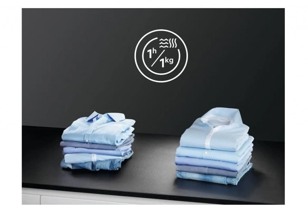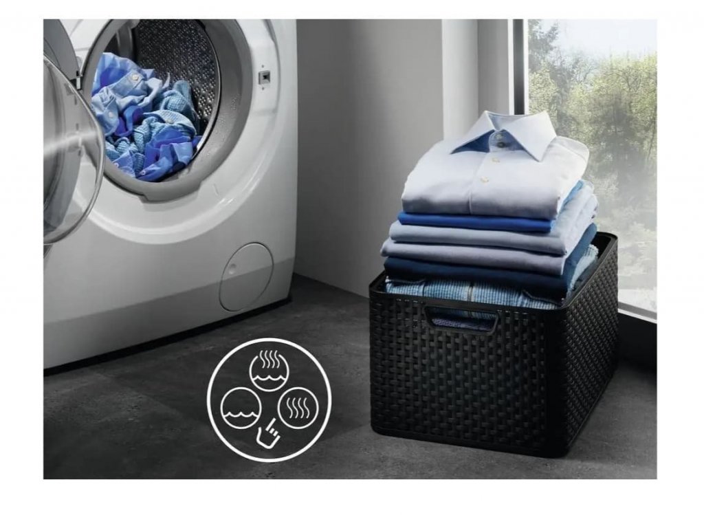 ROZBALENO, SPOTŘEBIČ MÁ ODŘENÝ BOK. Pračka se sušičkou Kombi s technologií DualSense přizpůsobí teplotu a pohyb bubnu různým tkaninám a upraví programy dle specifické náplně. Vše od vzorovaných bund po měkké svetry lze pečlivě vyprat, usušit a ochránit najednou.