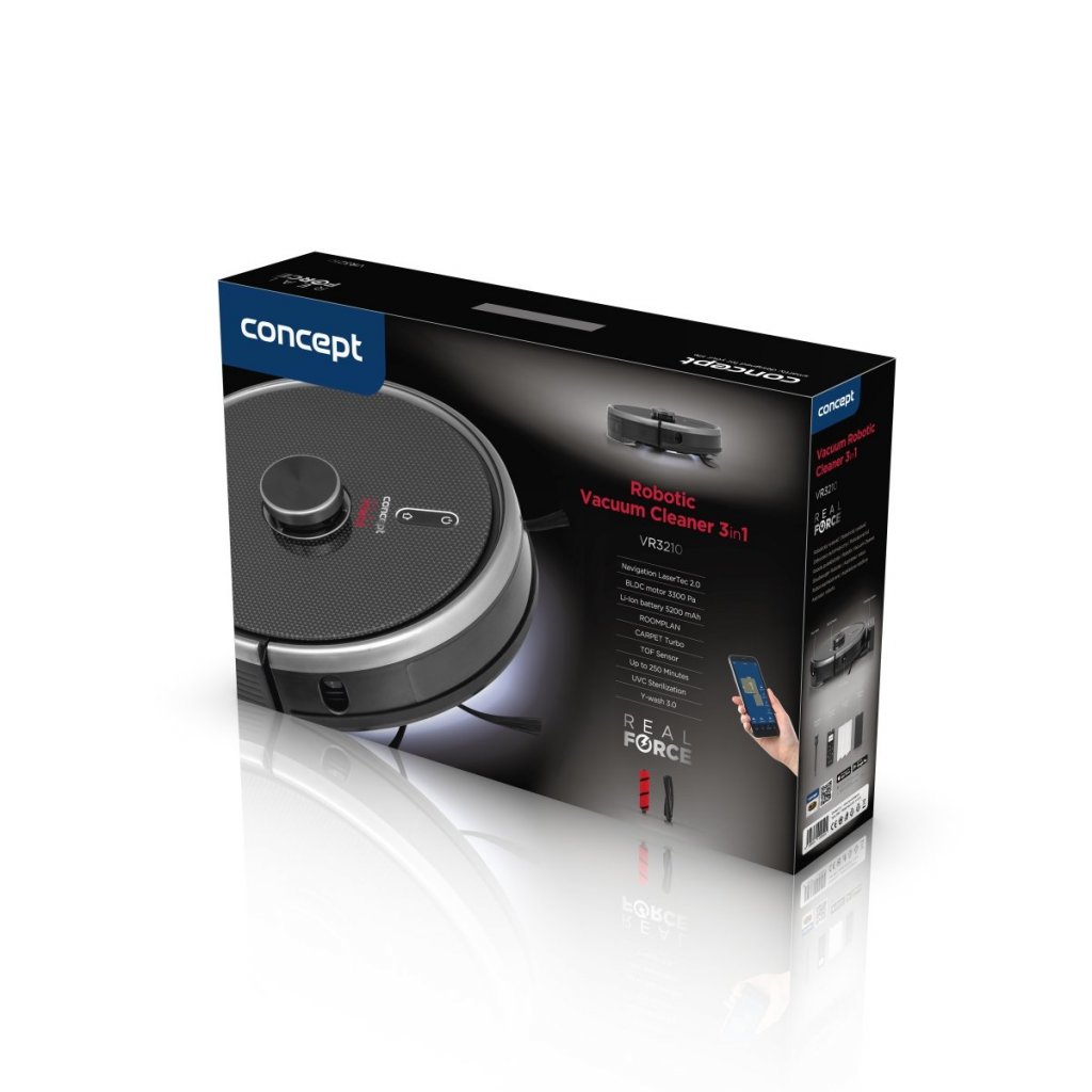 Robotický vysavač s mopem 3 v 1 Concept VR3210 je vybaven vyspělou laserovou navigací pro přesné plánování úklidu a UVC sterilizačním režimem. Vyniká vysokou sací silou, extrémní výdrží a nejefektivnějším způsobem vytírání Y-wash.