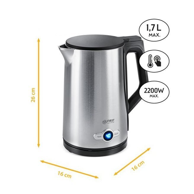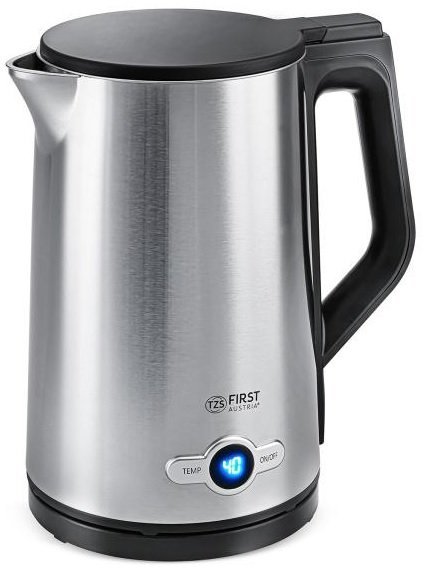Rychlovarná konvice, objem 1,7 l, nastavení teplot 40 až 100 °C, LED displej, nerezový plášť, filtr proti vodnímu kameni, automatické vypnutí, 360° otočná, snímatelná z podstavce, pojistka proti přehřátí, příkon 2 200 W.