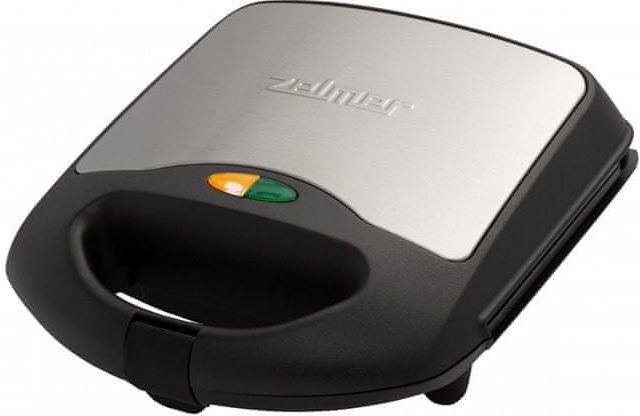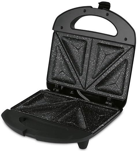 Sendvičovač, výkon 750 W, kapacita pro 2 sendviče, desky s nepřilnavým povrchem, kontrolky zapnutí a připravenosti, zámek na zajištění i odjištění rukojeti, tělo z plastu, protiskluzové nožičky.