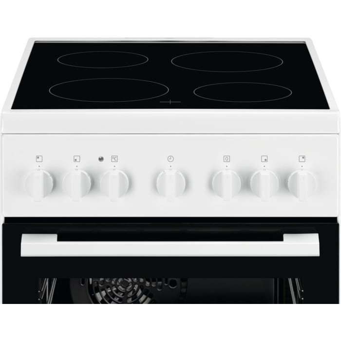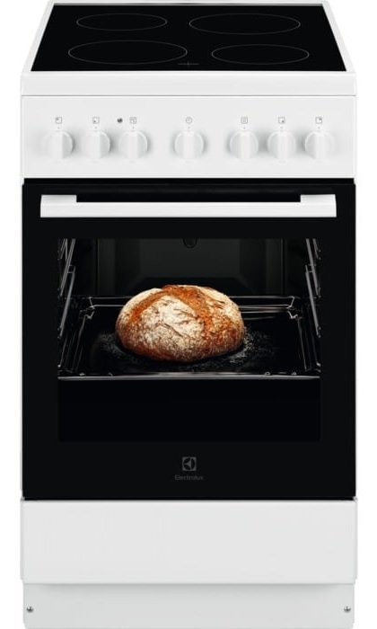 Sklokeramický sporák, energetická třída A, objem 60 l, výsuv plechů: bezpečnostní / drátěné závěsy, čištění trouby hladký smalt, displej: bez displeje, ovládání: mechanické – knoflíkové, připojení 400 V, příslušenství sporáku: 1 x plech na pečení, 1 x rošt, gril/infragril, časovač/minutka ANO, rozměry (V x Š x H): 85,8 x 50 x 60 cm.