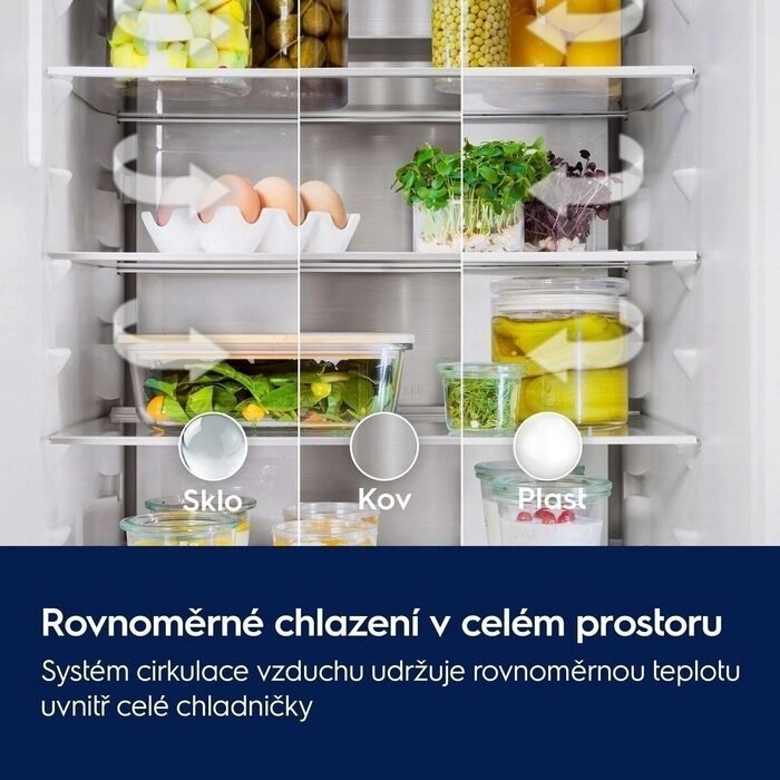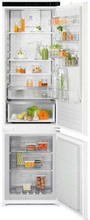 Vestavná kombinovaná chladnička, energetická třída E, NoFrost, objem chladícího prostoru: 207 l, objem mrazícího prostoru: 62 l, rozšířená záruka: Electrolux 10 let záruka na invertor motor, panty: pojezdy, displej: vnitřní, možnost změny otevírání dveří, hlučnost u chlazení: 37 dB, oddělená regulace teploty, supermrazení, varovný signál při otevřených dveřích a při zvýšení teploty, rozměry (V x Š x H): 188,4 x 54,6 x 54,9 cm.