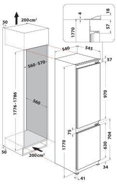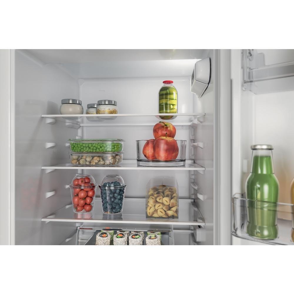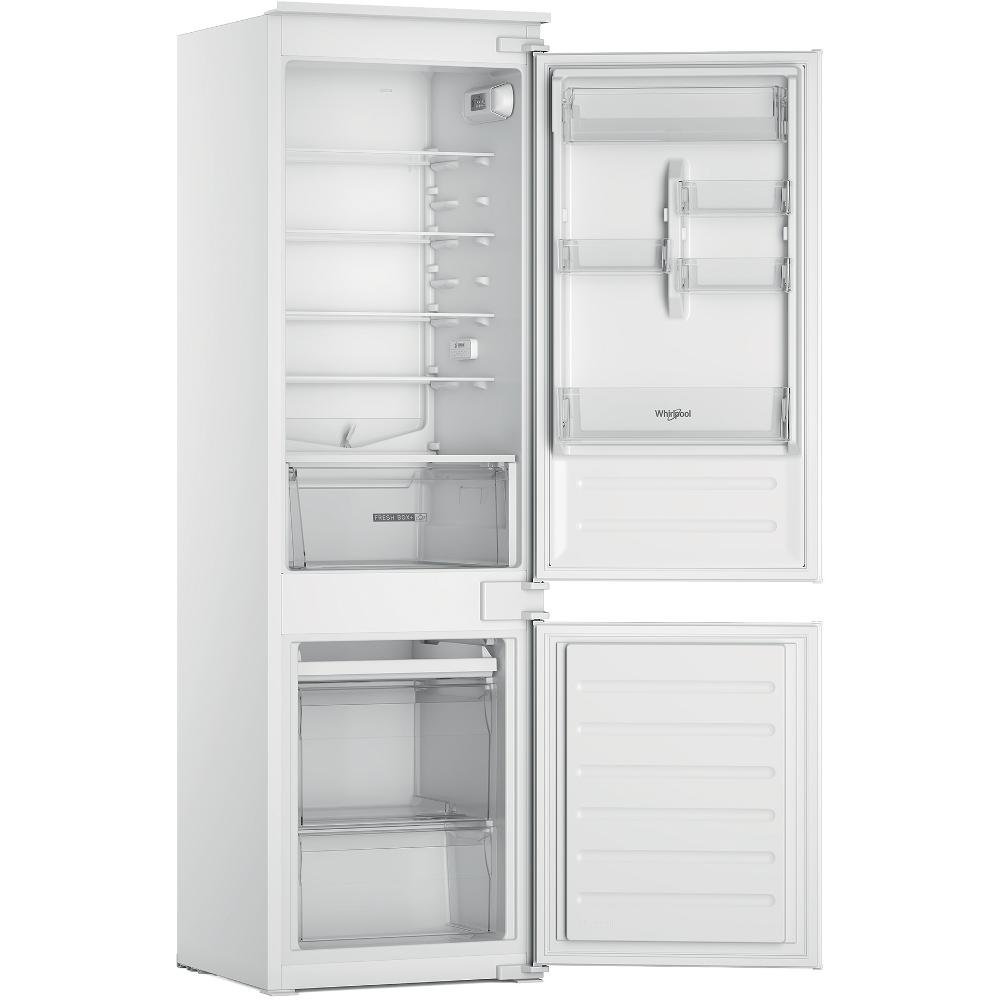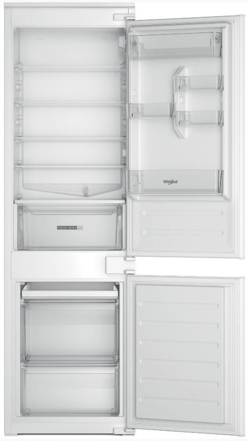 Vestavná kombinovaná chladnička, energetická třída E, objem chladničky 189 l / mrazničky 79 l, 10 let záruka na kompresor, technologie 6. SMYSL pro monitoring teploty, inovativní technologie Less Frost pro nižší tvorbu námrazy, Space Management přihrádky, Fast Cooling rychlé chlazení, Fast Freeze rychlé zmrazení, StopFrost mraznička, přihrádka FreshBox+, režim Holiday pro nižší spotřebu, LED osvětlení, zvukový alarm otevřených dveří, mechanické ovládání, hlučnost 34 dB, rozměry (V × Š × H): 177 x 54 x 54,5 cm.