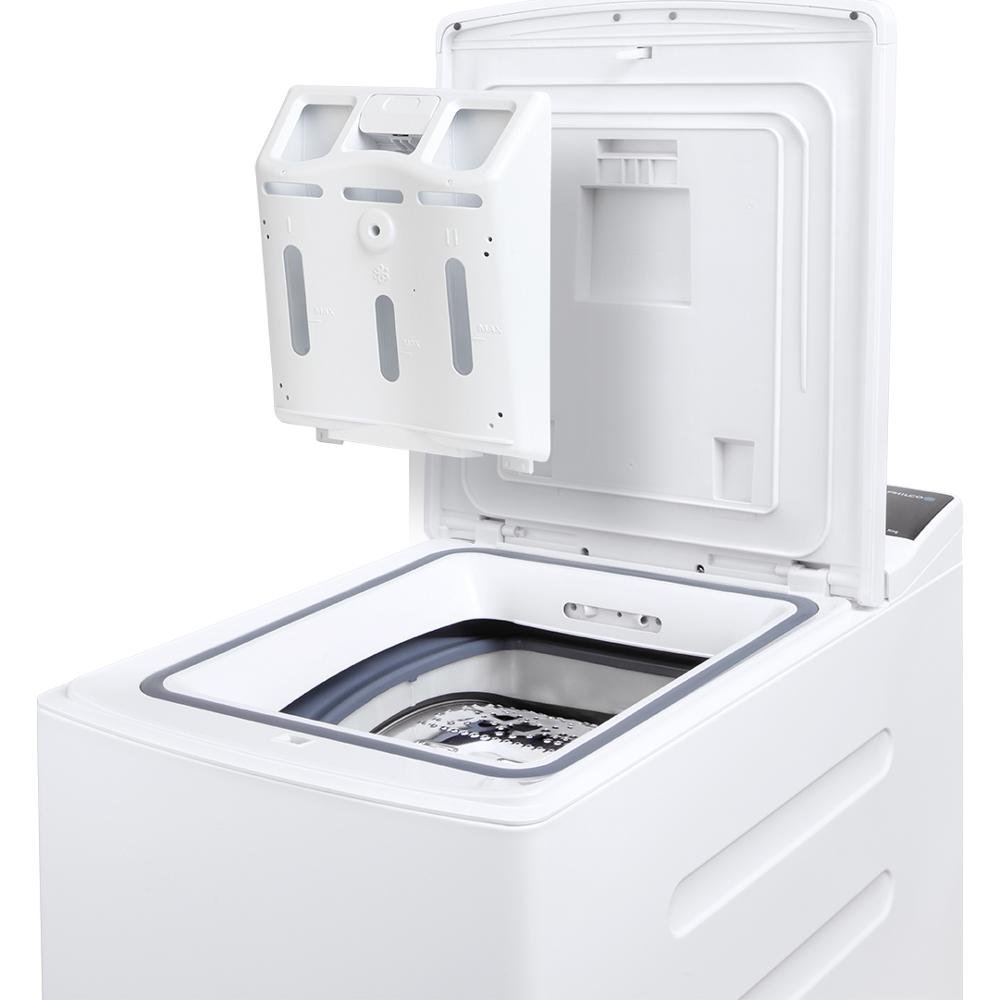 Pračka vrchem plněná, energetická třída A, kapacita 7 kg, počet programů 14, LED displej, spotřeba vody za cyklus: 45 l, spotřeba energie na 100 cyklů 44 kWh, otáčky 1 200 ot/min, hlučnost 80 dB, rozměry (V x Š x H): 87,5 x 40 x 61 cm.