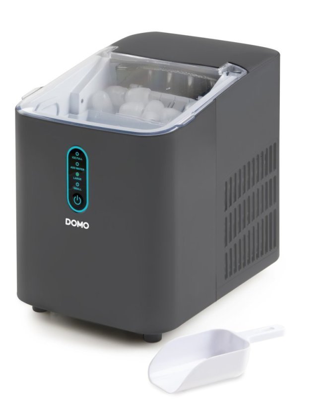 Výrobník ledu DOMO DO1132IB je kompaktní, ale svým výkonem dodat až 12 kg ledu za 24 hodin konkuruje většině modelů ve třídě výrobníků ledu. Cyklus na výrobu 8 kostek trvá jen 6-8 minut a můžete si zvolit, zda chcete menší nebo větší kostky. Provedení v moderní matně šedé barvě je působivé a neokoukané.